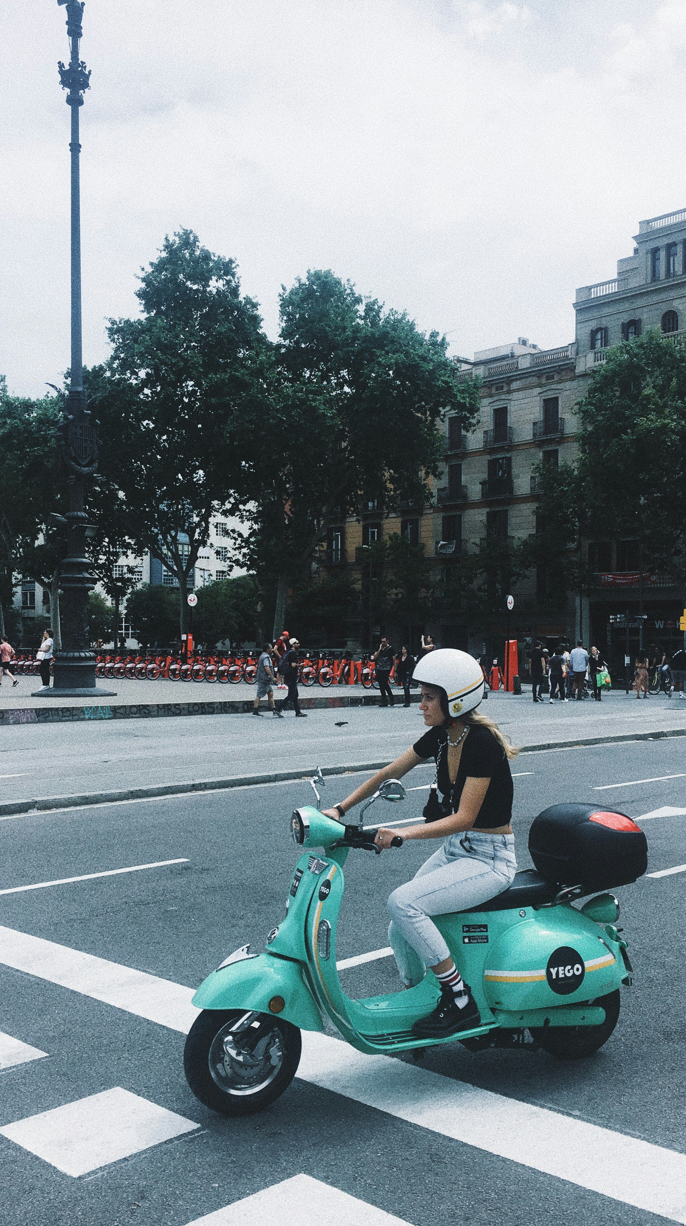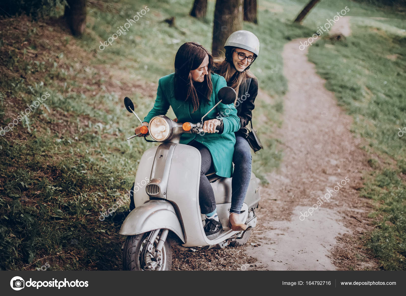 Girl Leads A Group Of Bikers Riding A Vintage Italian Scooter Vespa Stock Photo Download Image Now Istock