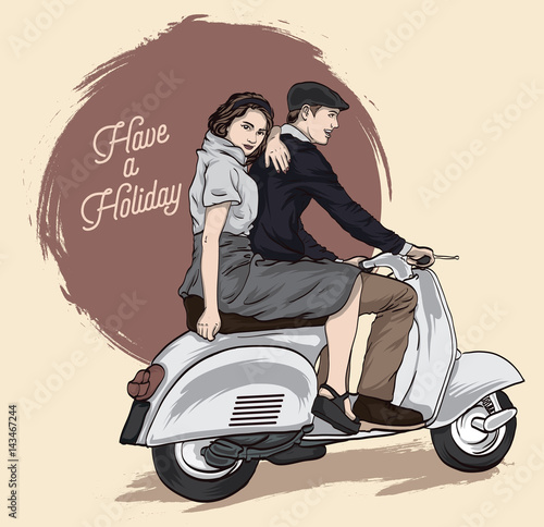Man Riding Motor Scooter With Woman Illutstration Scooter Piaggio Vespa Motorcycle Motorcycle Couple Couple Motorcycle Vector Love Couple Png Pngwing