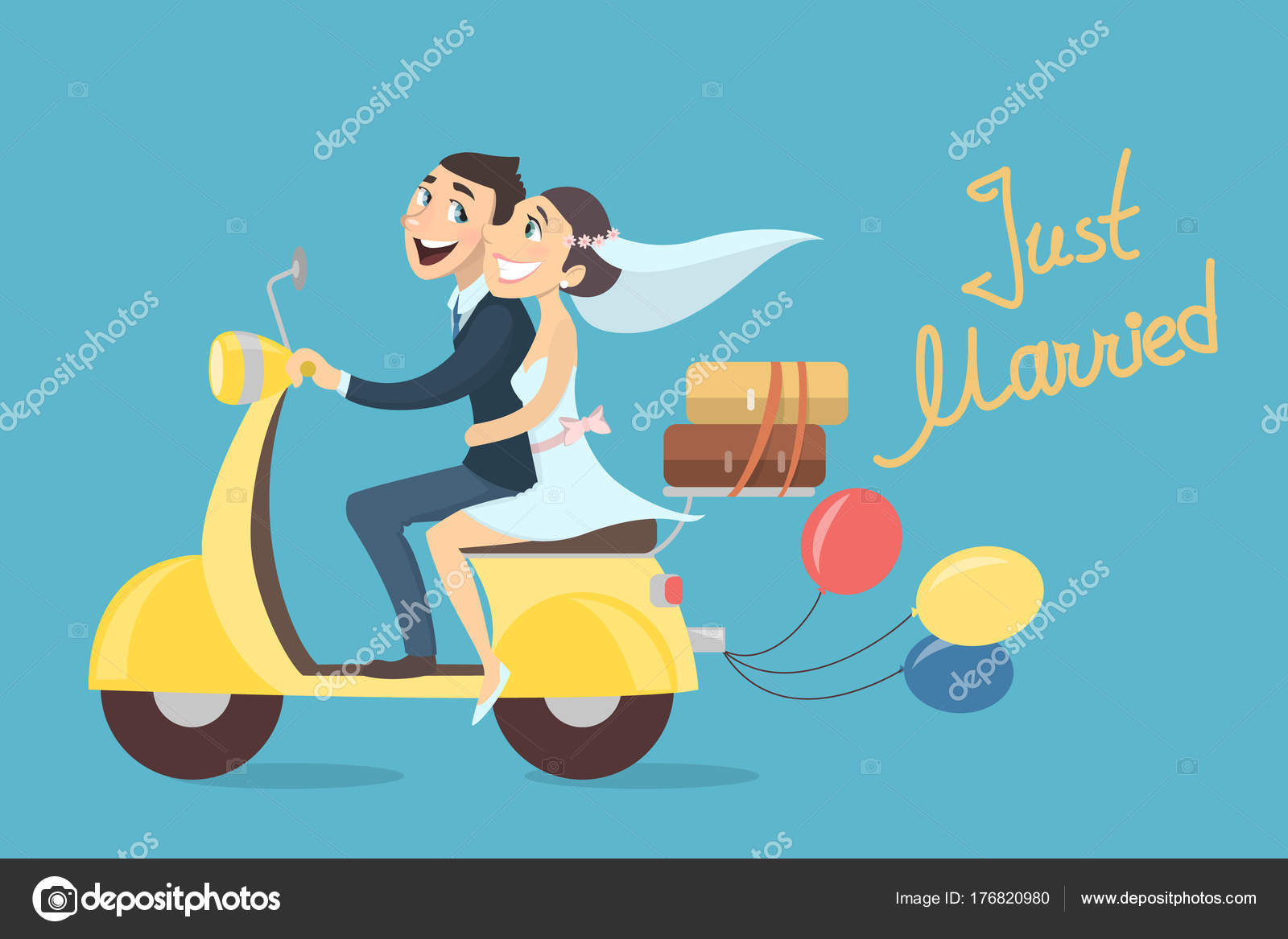 Vector Images Illustrations And Cliparts Love Couple Riding A Vespa Scooter In Wedding Day Groom And Bride On The Motorbike Vector Illustration Italian Honeymoon Hqvectors Com