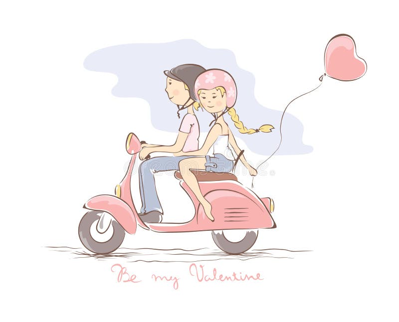 Lovely Couple Riding A Red Scooter Cartoon Vector Cartoondealer Com 41477805