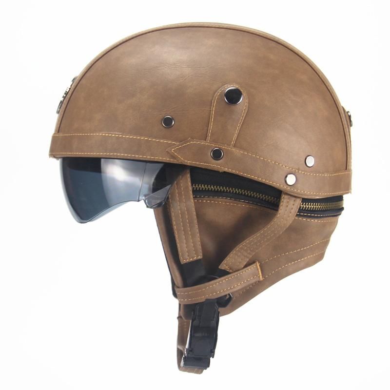 Motorcycle Motorbike Rider Half Open Face Pu Leather Helmet Visor With Collar Leather Vintage Motorcycle Motorbike Vespa Street Helmets Motorcycle Street Motorcycle Helmets From Jerry03 45 76 Dhgate Com