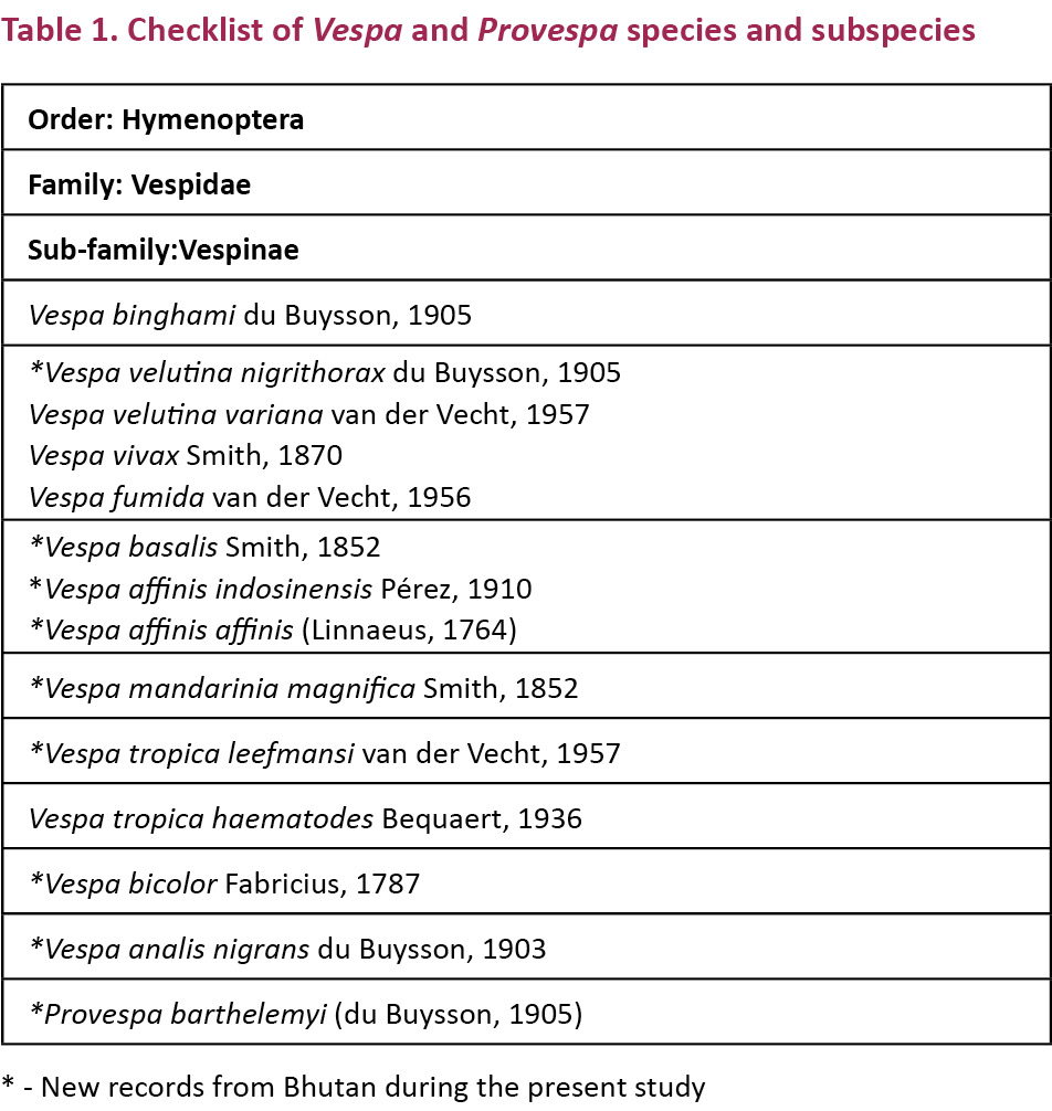 View Of New Records Of Social Wasps Hymenoptera Vespinae Vespa And Provespa From Bhutan Journal Of Threatened Taxa